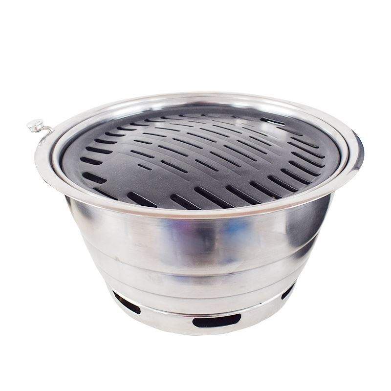 Thịt nướng là món ăn đăc trưng của xứ sở Hàn Quốc, chính vì vậy Hàn Quốc đi đầu vê lĩnh vực tạo ra những chiếc bếp nướng thịt bằng than hoa vô cùng tinh tế.Bếp nướng không khói than hoa Hàn Quốc là loại bếp đặt tại ngay bàn, dùng để nướng các món ăn đặc biệt là thịt và hải sản BBQ…Bếp hiện rất được ưa chuộng dùng cho nhà hàng,quán nhậu tại Việt Nam.Bếp nướng than hoa Hàn Quốc kiểu hút khói dương có ống hút khói treo trên trần dẫn khói đi ra ngoài. Đồng thời với sức hút như vậy cũng làm cho than được đỏ hồng hơn, giúp thức ăn chín đều và nhìn đẹp mắt hơn bao giờ hết.Vỉ nướng được chế tạo bằng thép không gỉ, dễ lau chùi vệ sinh sau khi sử dụng. Toàn bộ vật liệu đều đạt chất lượng quốc tế.