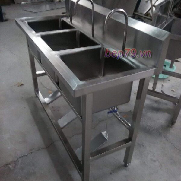 Chậu rửa tay inox có van đạp chân 3 hố